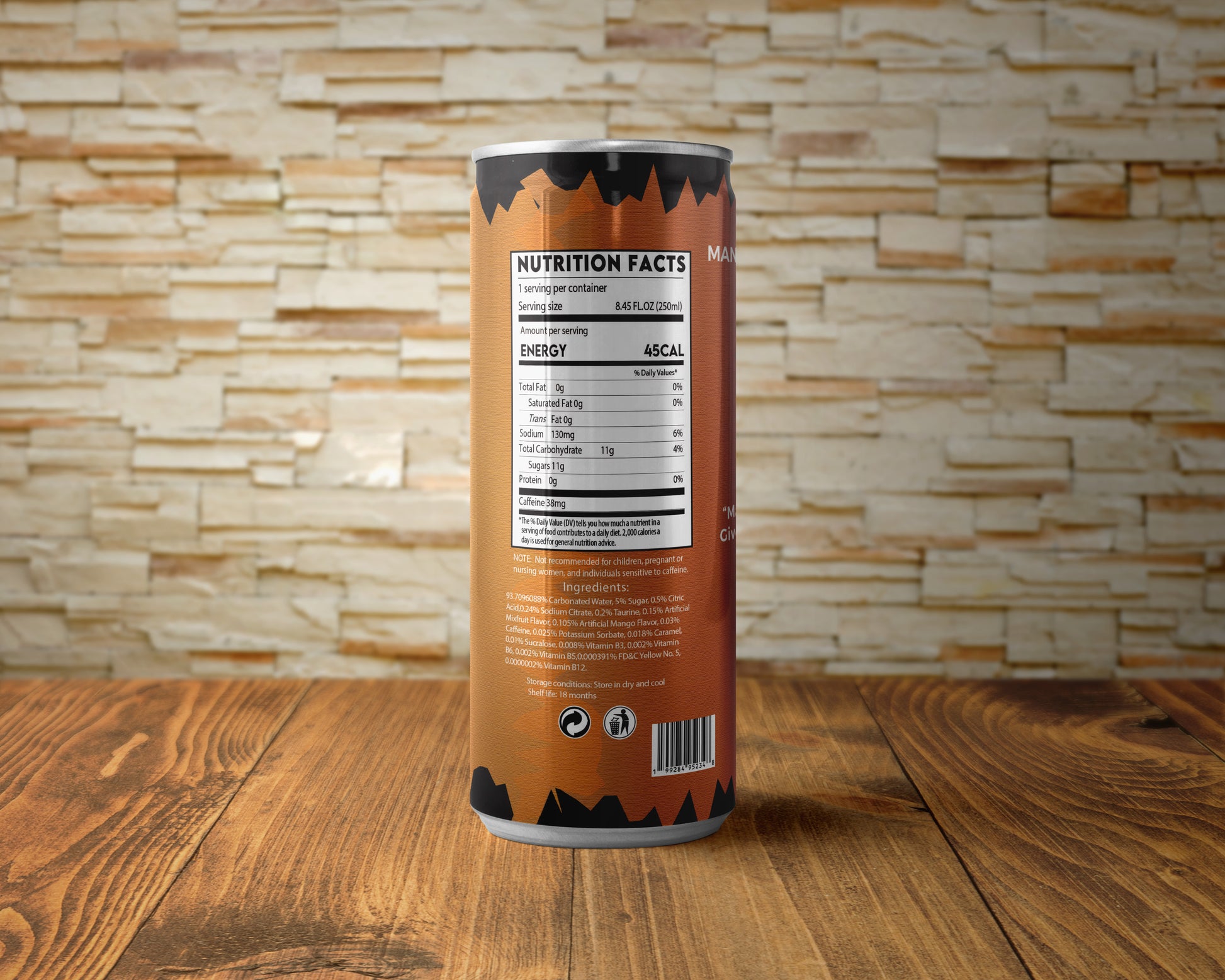 Tropical and bold, Mango Charge brings juicy mango flavor with a sparkling kick. Designed for active lifestyles, it fuels your performance while keeping you focused, alert, and refreshed—all day long."Fuel your fire with the bold, tropical rush of ripe mango. Every sip bursts with juicy sweetness, balanced with a powerful energy kick to keep you sharp, focused, and unstoppable. Refreshing, exotic, and electrifying – this is pure energy with a tropical twist."